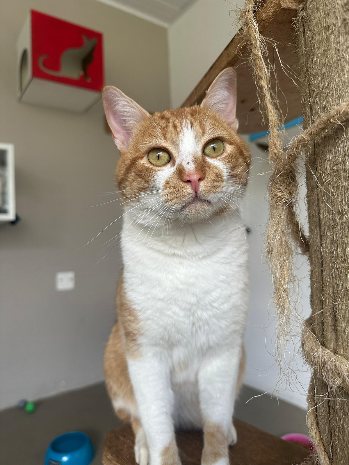 Resgatado após ter sido abandonado, ele mostra todos os dias como o amor transforma vidas. Muito carinhoso, adora receber atenção e carinho, mas como todo bom gato, quando não quer mais, avisa do jeitinho dele — às vezes até com uma mordidinha fofa. 🐱💙